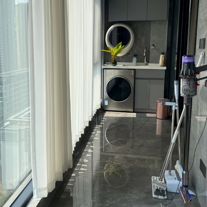 将阳台空出来之后,可以设计不同的功能区,比如,将阳台设计成休闲区,平时休息、欣赏风景、还可以设计成洗衣区,清洁和晾晒都能满足……
