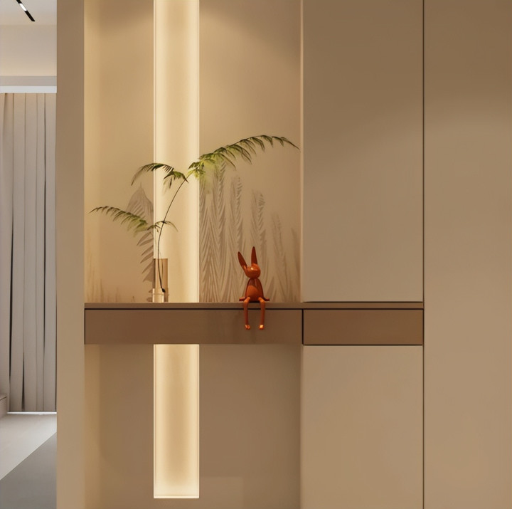 想要将玄关收拾干净,大家可以设计上到顶的玄关柜,这样不管是鞋子、杂物等等,都能放入到其中,拿取会更方便。