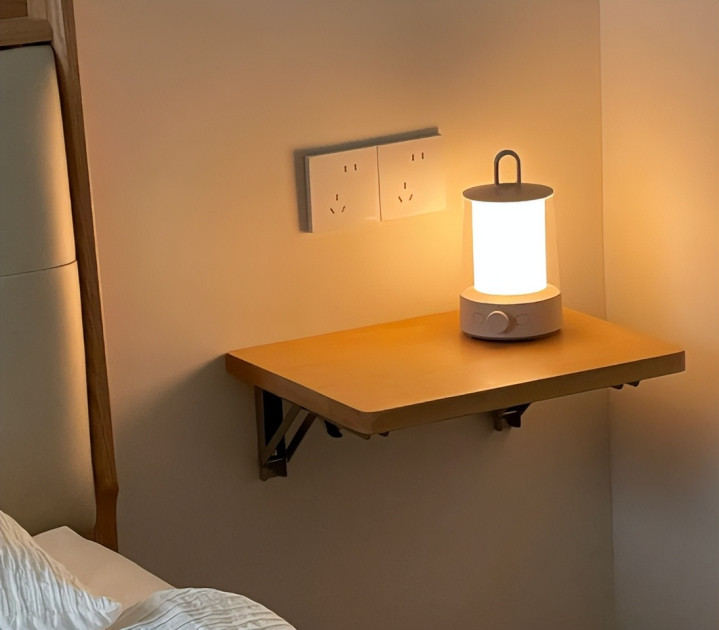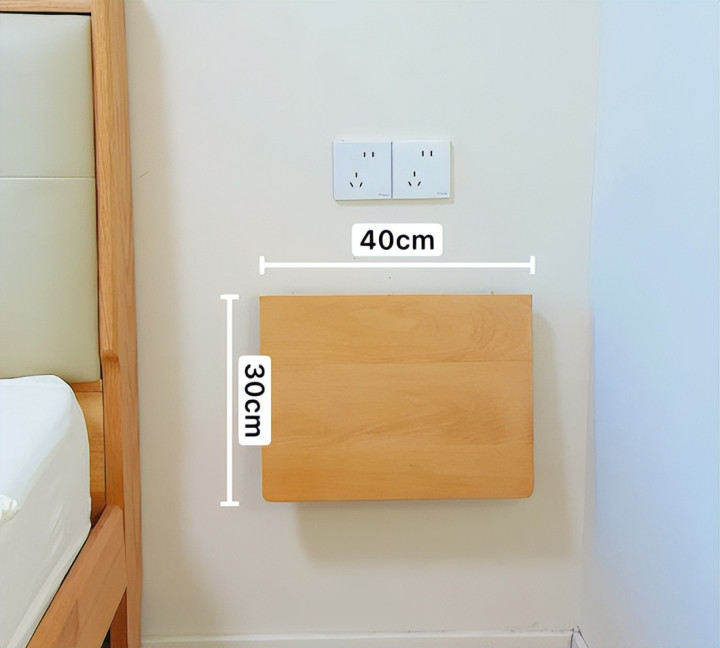 我看到的这户人家就很聪明,他是自己动手做了一个折叠床头柜,就是一块折叠的木板,测量好距离之后,将其固定在墙壁上就可以了。